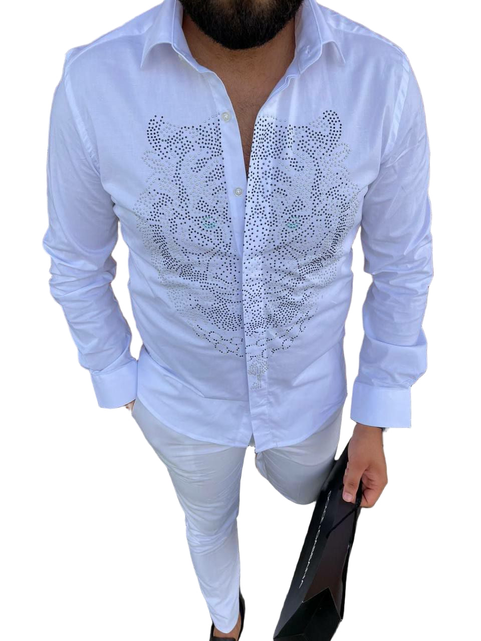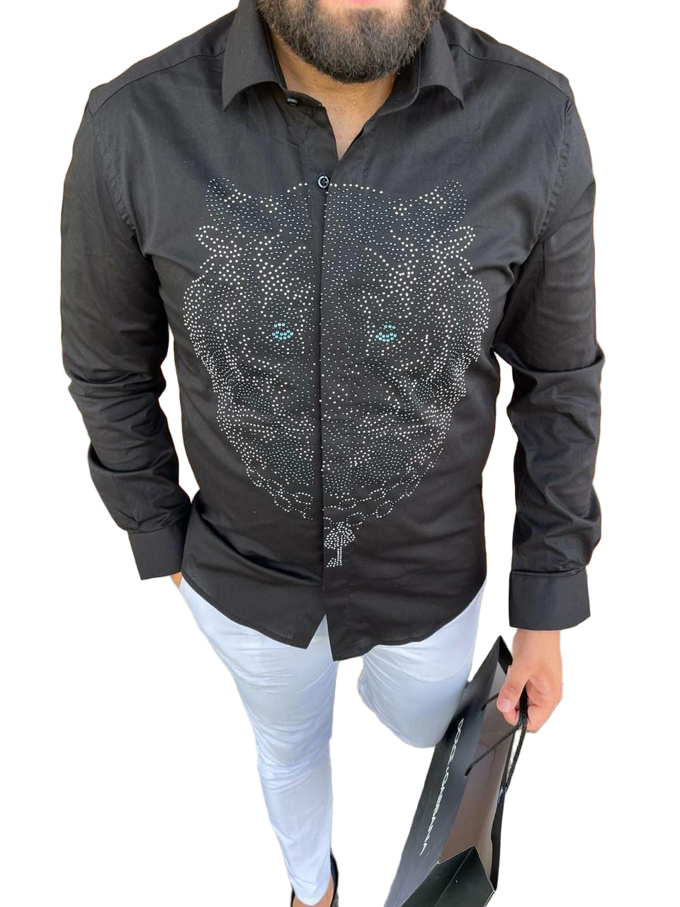 Material: Cotton Blend,Style: Modern men's casual shirt featuring a distinctive panther face stud design, perfect for smart-casual occasions.Applicable Season: All... Lue lisää