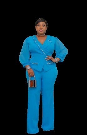 Material: Polyester, Crepe, Rhinestones, Style: High-fashion suit set featuring a structured blazer with rhinestone trim lapels and pockets, paired with...