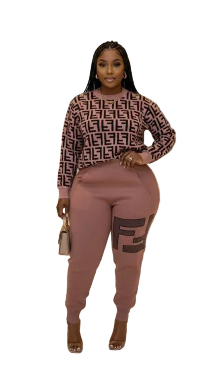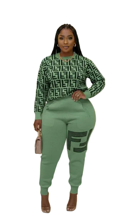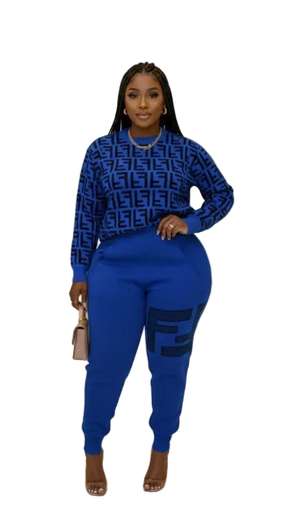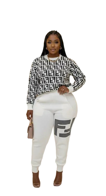 Material: Cotton, Acrylic, Spandex, Style: Statement knitwear set featuring a sweater with an all-over logo print and matching joggers with...