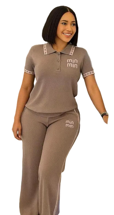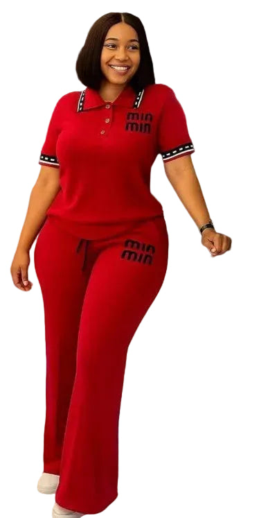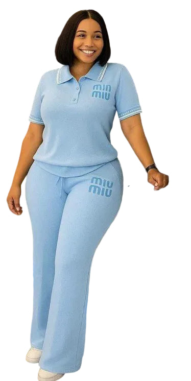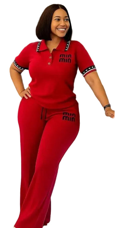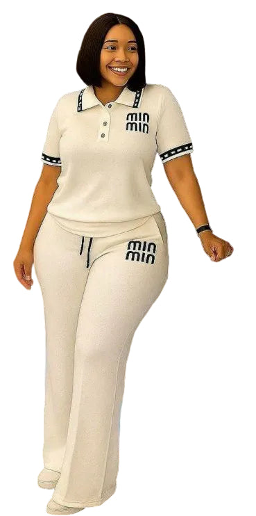 PREPPY CHIC KNIT POLO AND WIDE LEG PANT SET