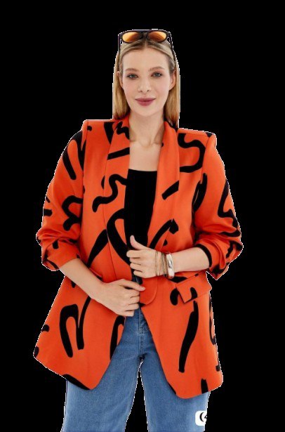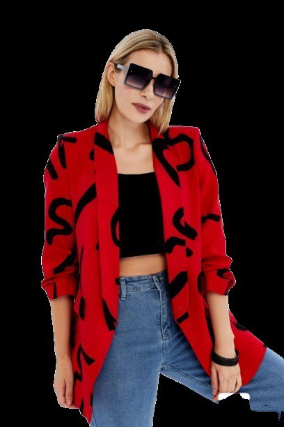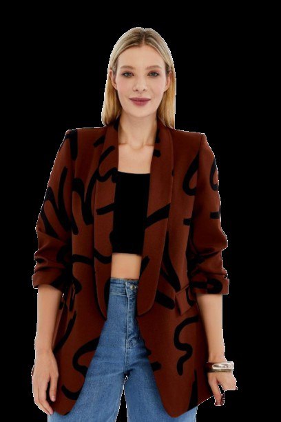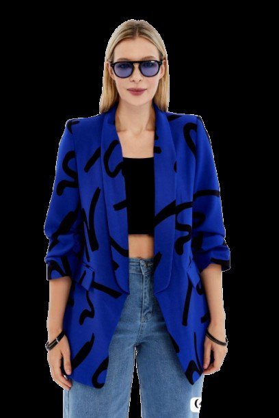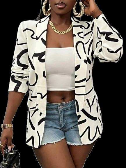 Premium Ladies Luxury Abstract Graffiti Print Ruched Sleeve Statement Blazer