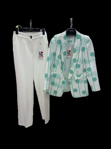 White/Emerald Green Geometric Print & Navy Trousers / 42