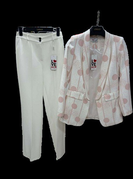White/Dusty Pink Geometric Print & White Trousers / 48