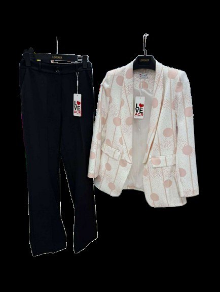 White/Dusty Pink Geometric Print & Black Trousers / 48