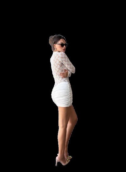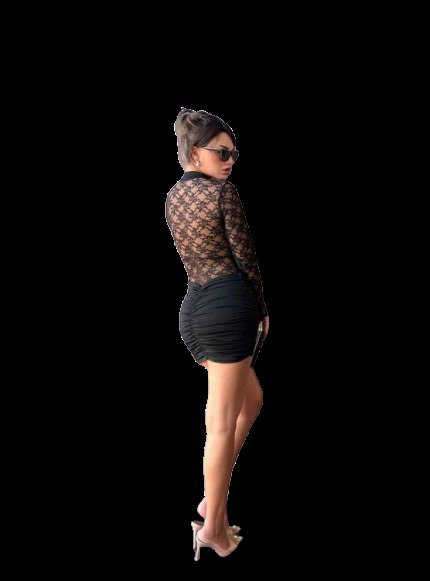 Premium Ladies Luxury Sheer Lace Long Sleeve Keyhole Neck Ruched Bodycon Mini Dress