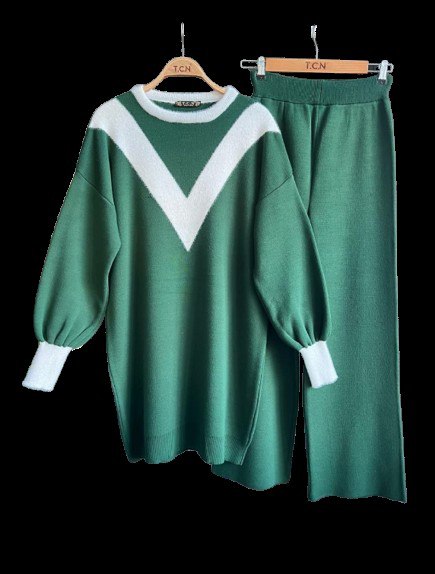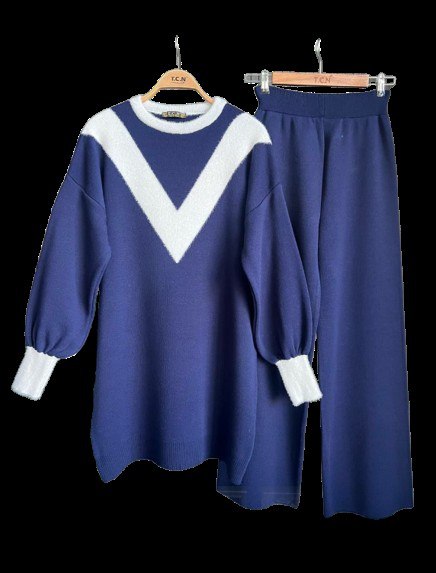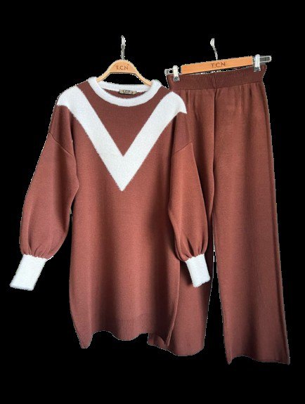 CHIC V-NECK CHEVRON KNIT SWEATER AND WIDE LEG PANT SET