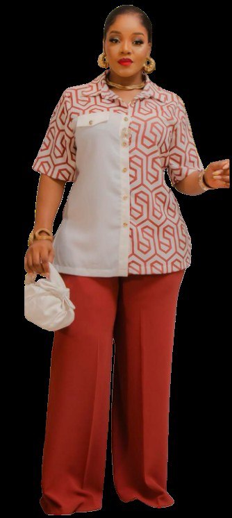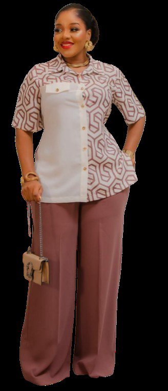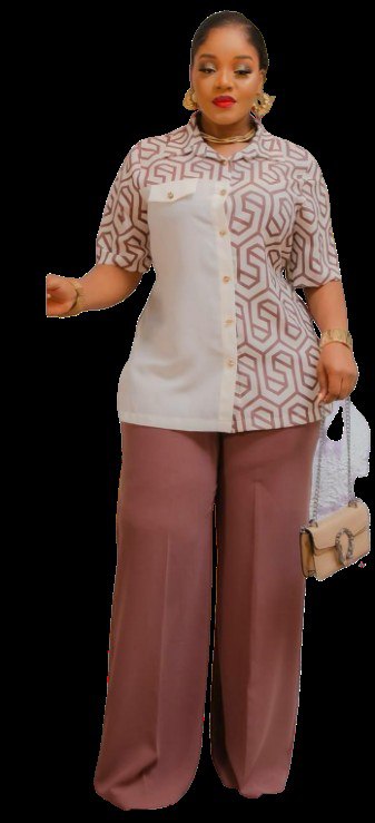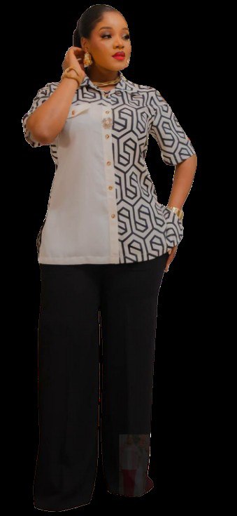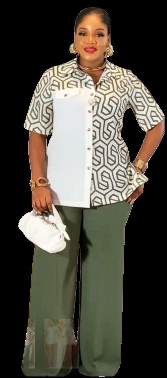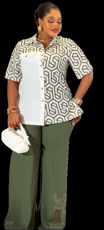 CONTEMPORARY GEOMETRIC PRINT SHIRT AND WIDE LEG PANT SET