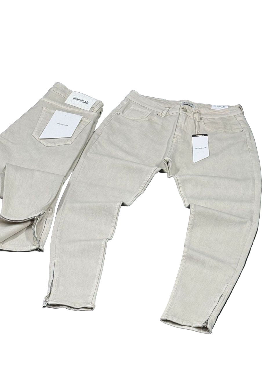 Style: A clean and sophisticated men's jean in a versatile cream color. This slim-fit pair is finished with functional zippers at the ankles for a modern, adjustable taper.
