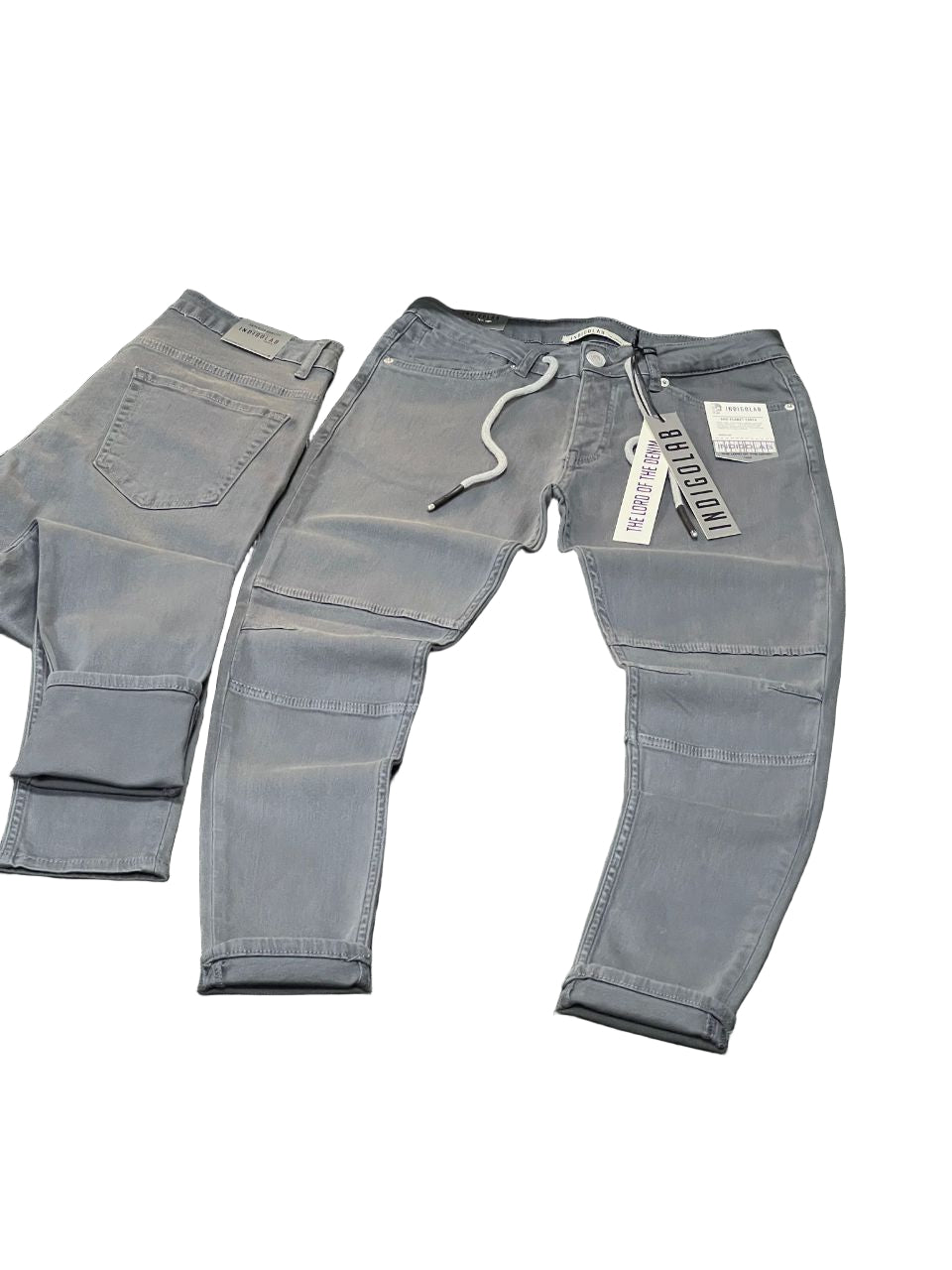 Material: Denim,Style: A comfortable and stylish men's jean in a washed grey, featuring a modern drawstring waist and subtle moto-inspired... Read more