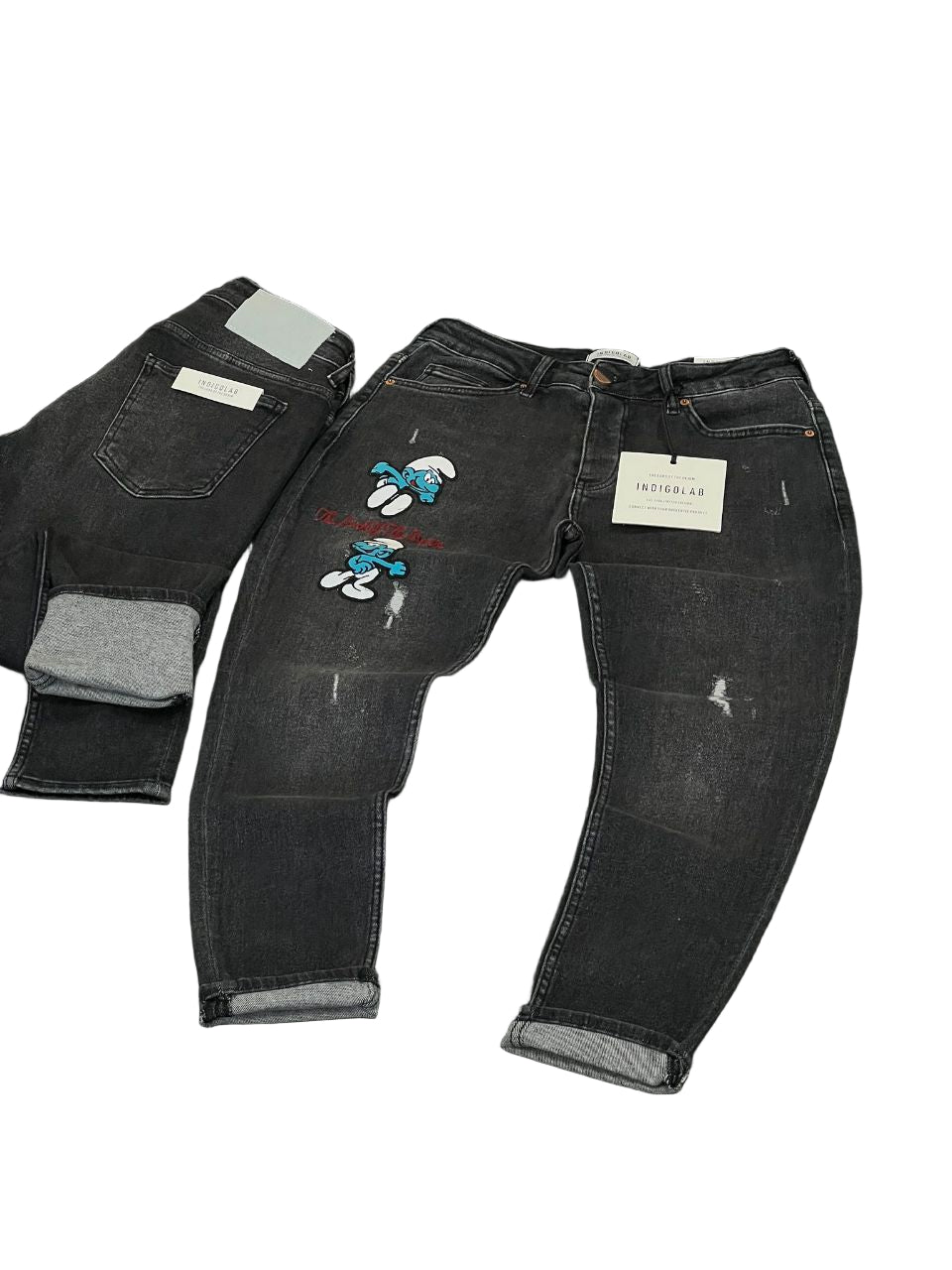 Material: Denim,Style: A fashion-forward men's jean in a faded black wash, featuring colorful character embroidery and subtle distressing for a... Read more