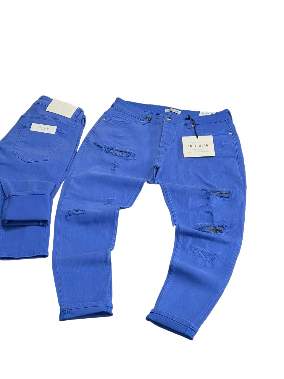 Material: Denim,Style: A vibrant and bold men's jean in a striking royal blue, featuring moderate distressing and rips for an... Read more