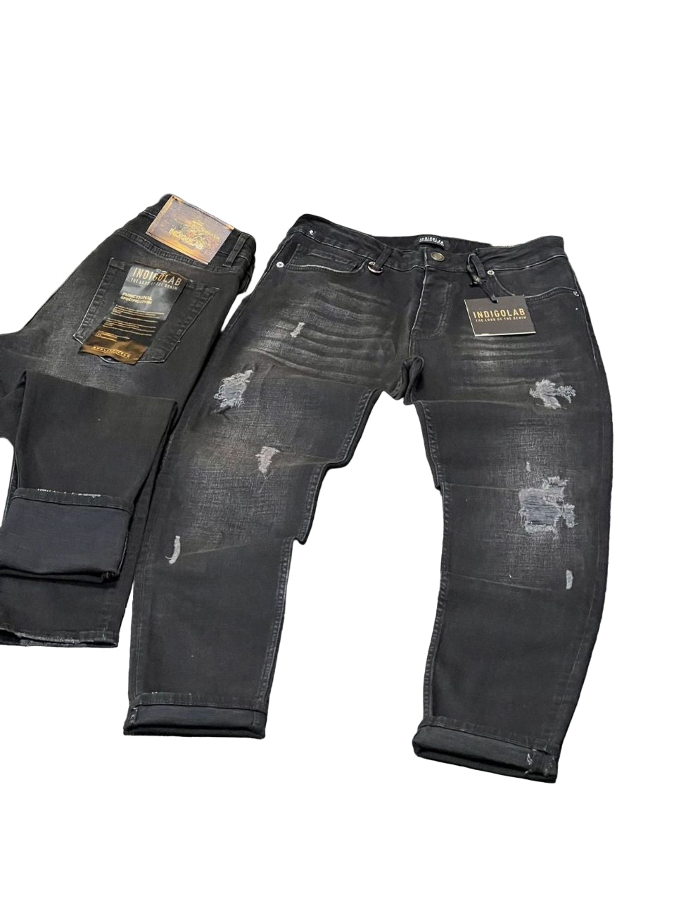 Material: Denim,Style: A versatile men's jean in a washed black, featuring a modern slim fit with ripped and distressed details... Read more