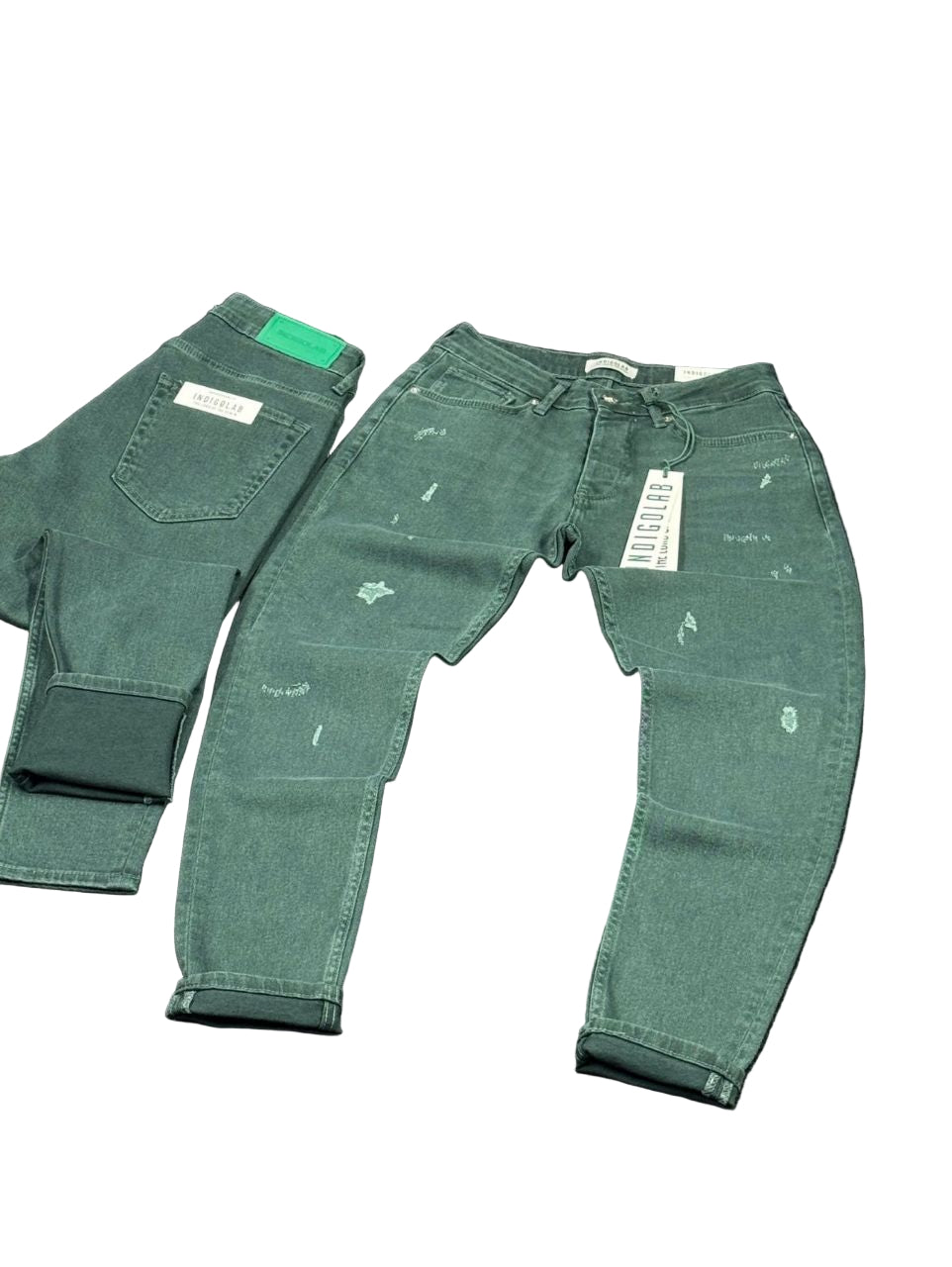 Material: Denim,Style: A unique and fashion-forward men's jean in a rich, washed teal color. This slim-fit pair features subtle distressing... Read more